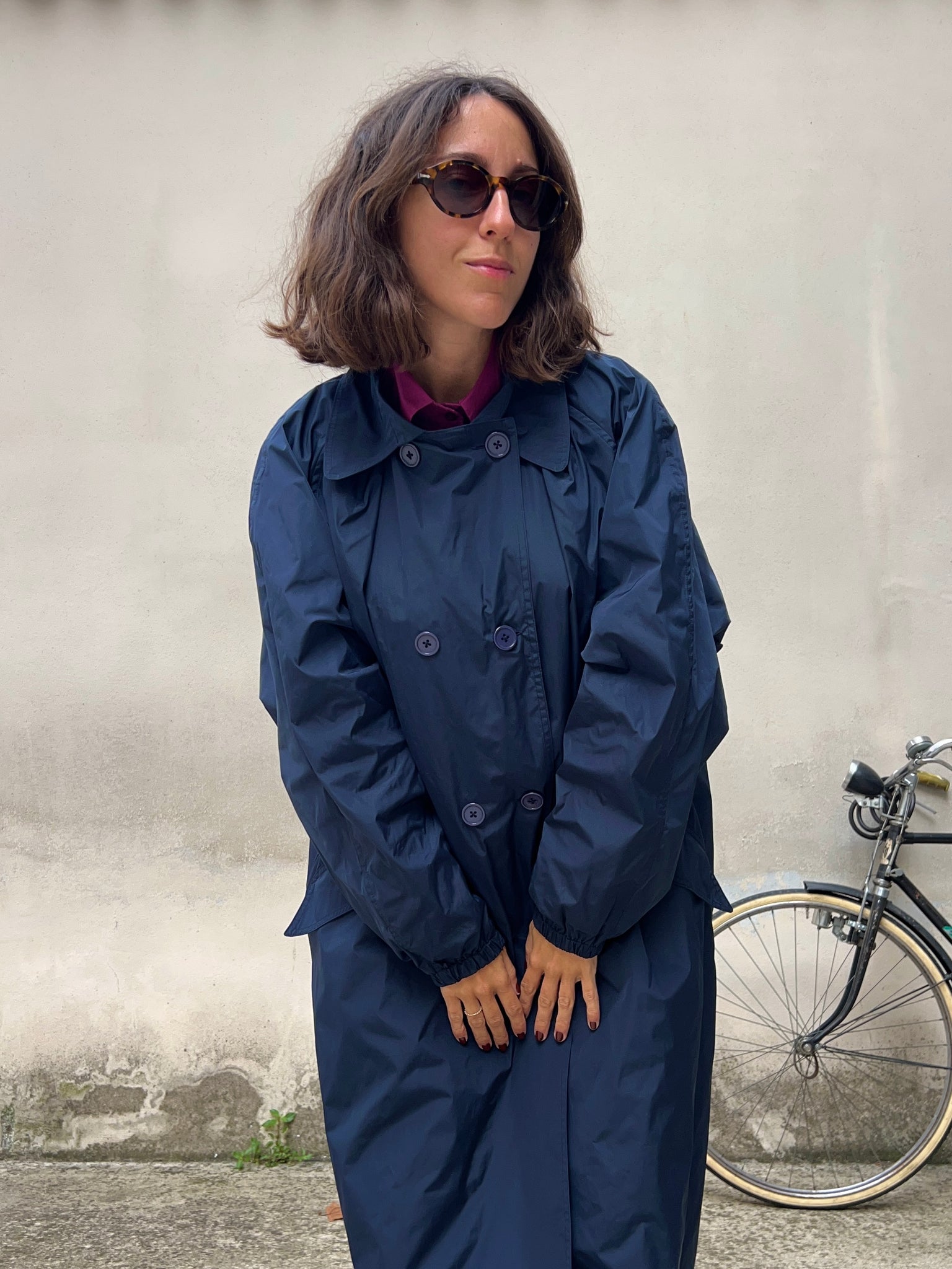 Trench sartoriale by Chiara Luppi, in tessuto tecnico impermeabilizzato.