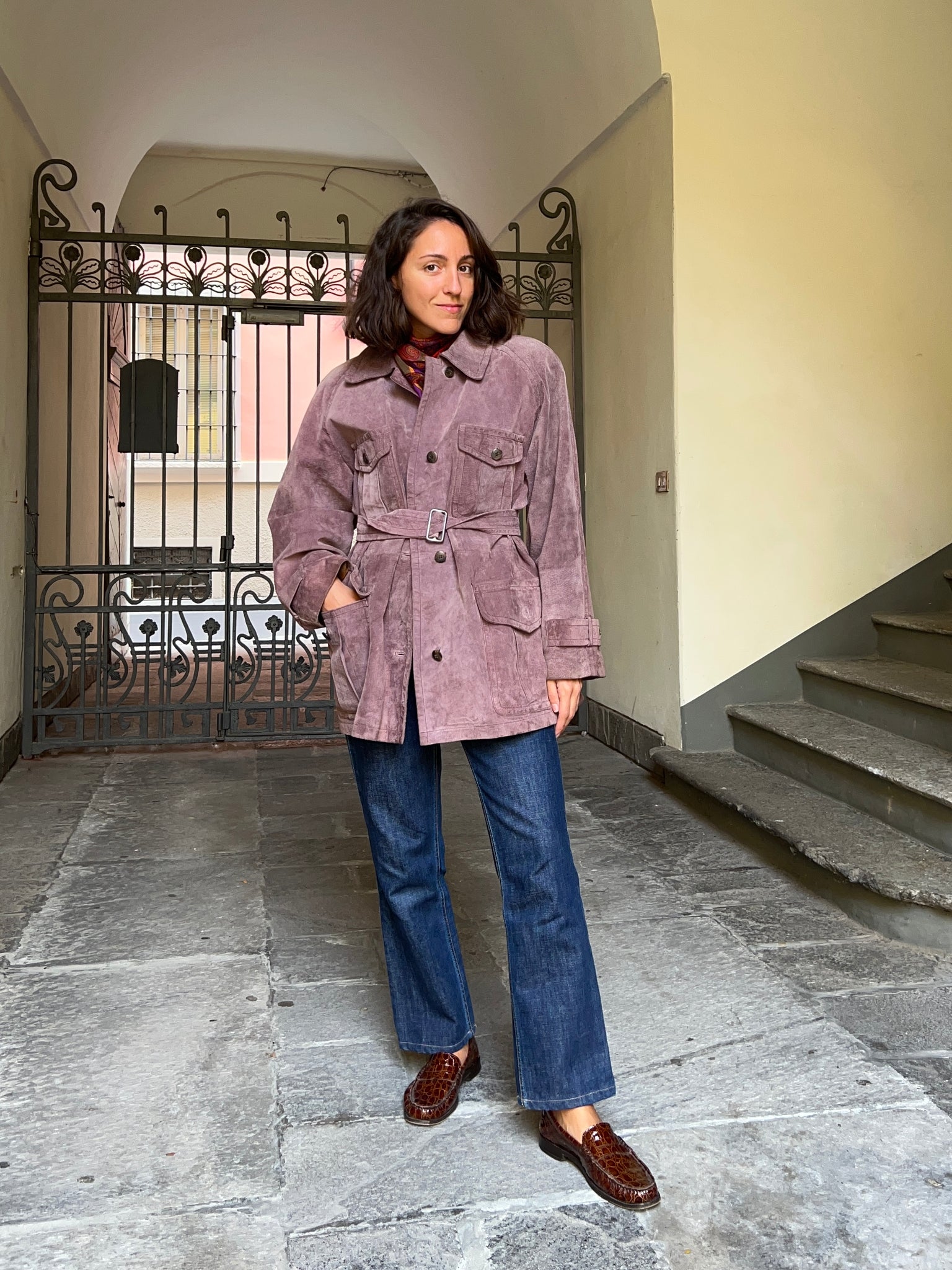 Taglia 38 europea che corrisponde a una 42 italiana, ma veste abbondante.