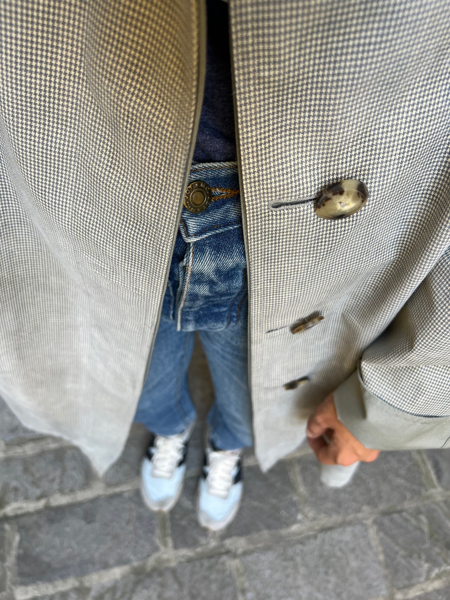 Trench vintage double-face, si può indossare da entrambi i lati.