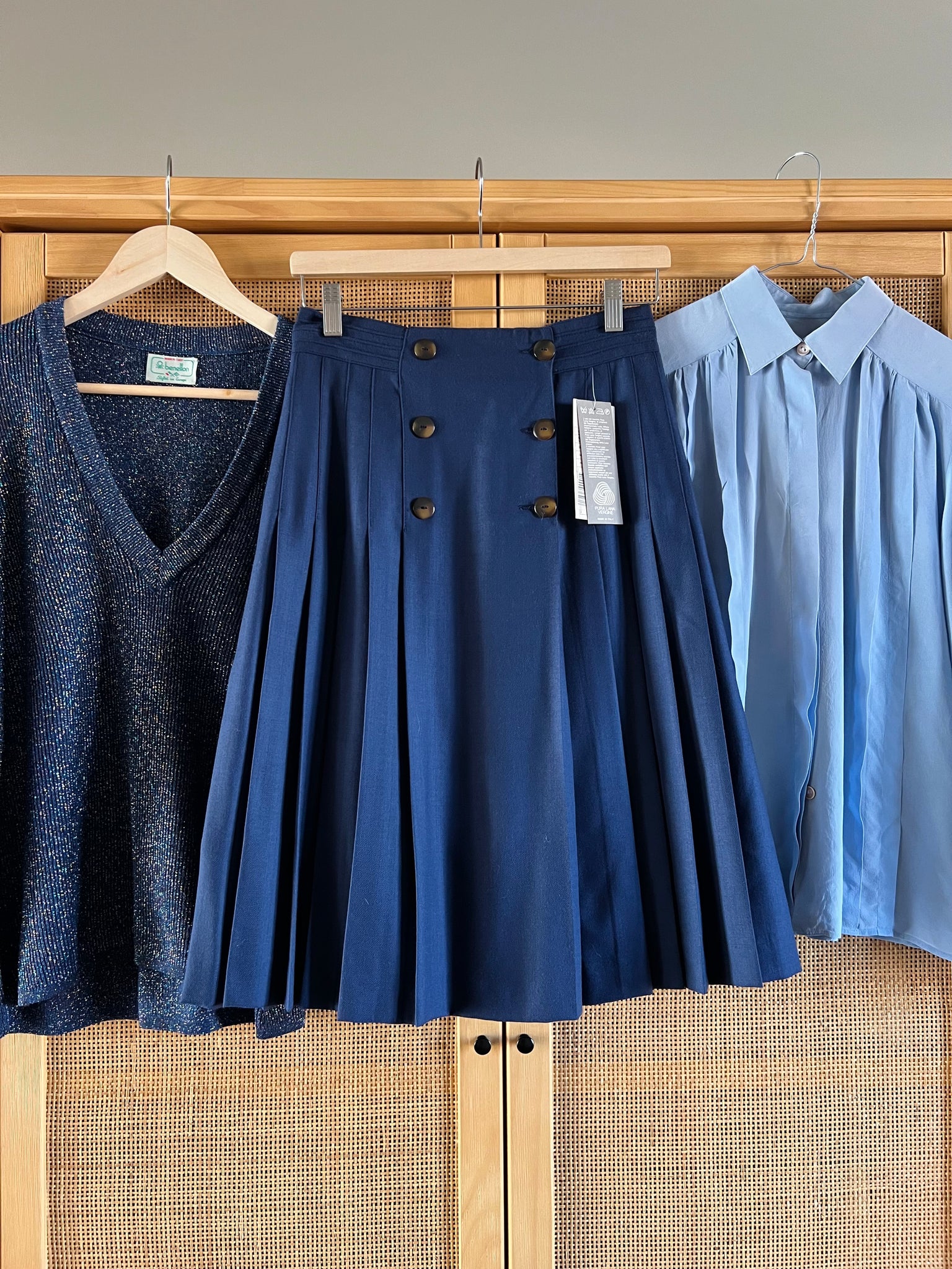 Gonna vintage lunghezza midi, con pieghe e bottoni.