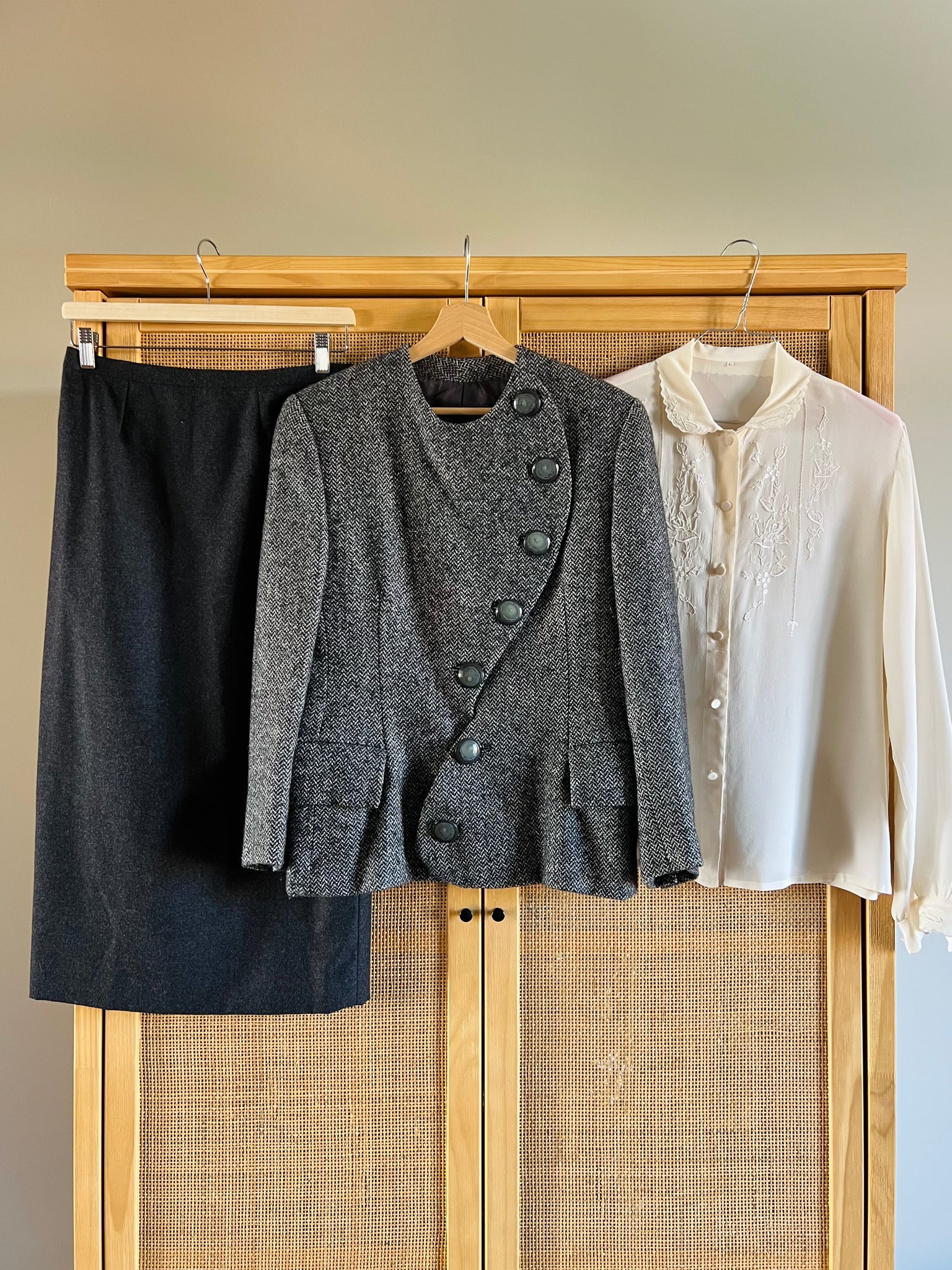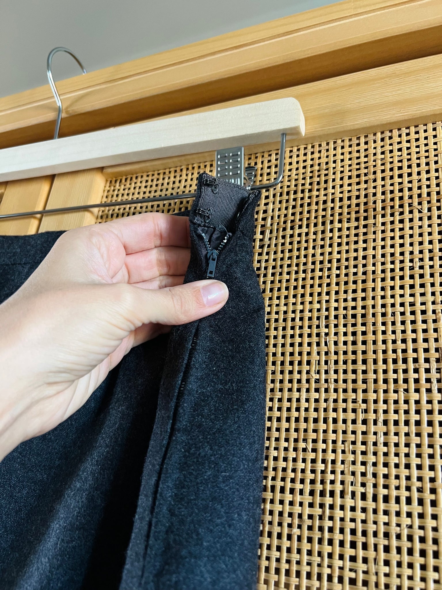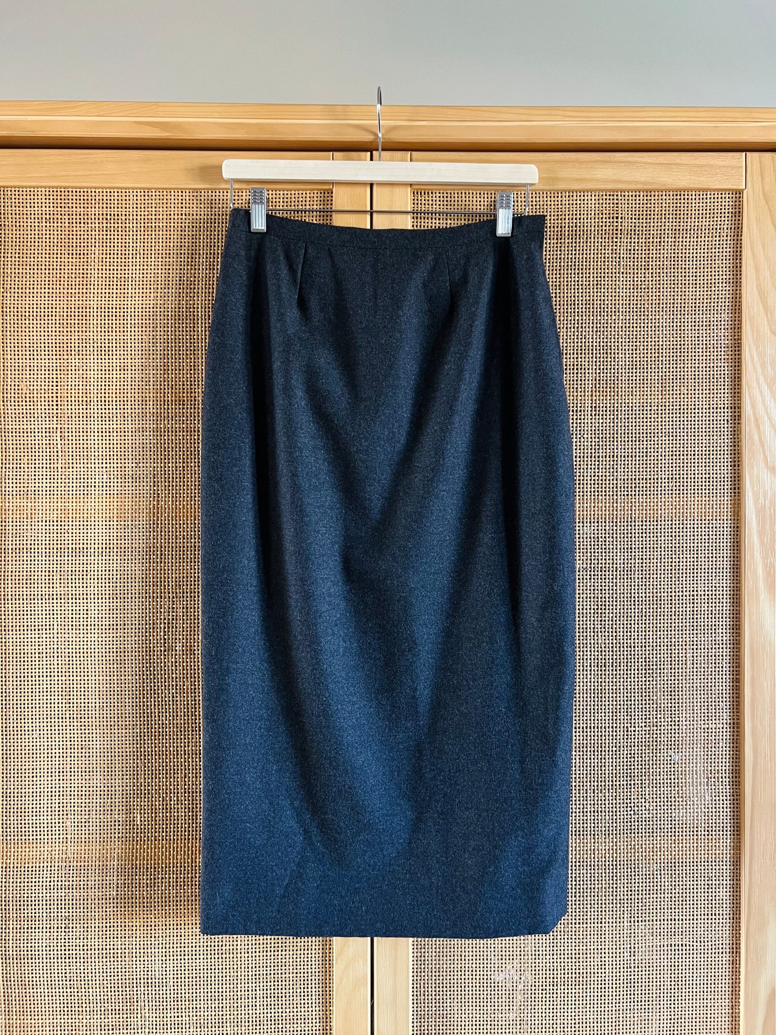Gonna vintage sartoriale di lana, foderata, modello a tubino, a vita alta, lunga fino a a metà polpaccio.