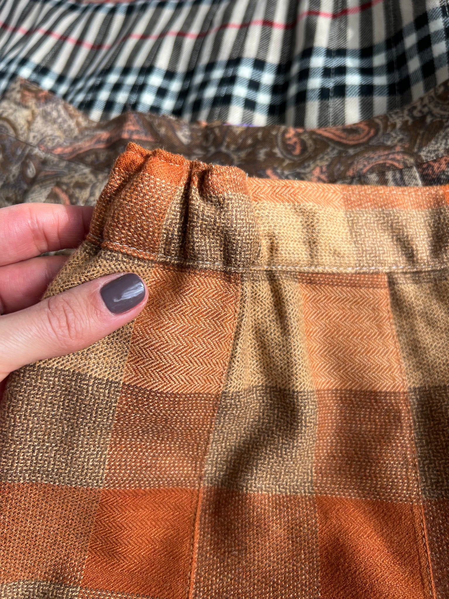 Gonna corta vintage sartoriale in lana pesante, foderata.