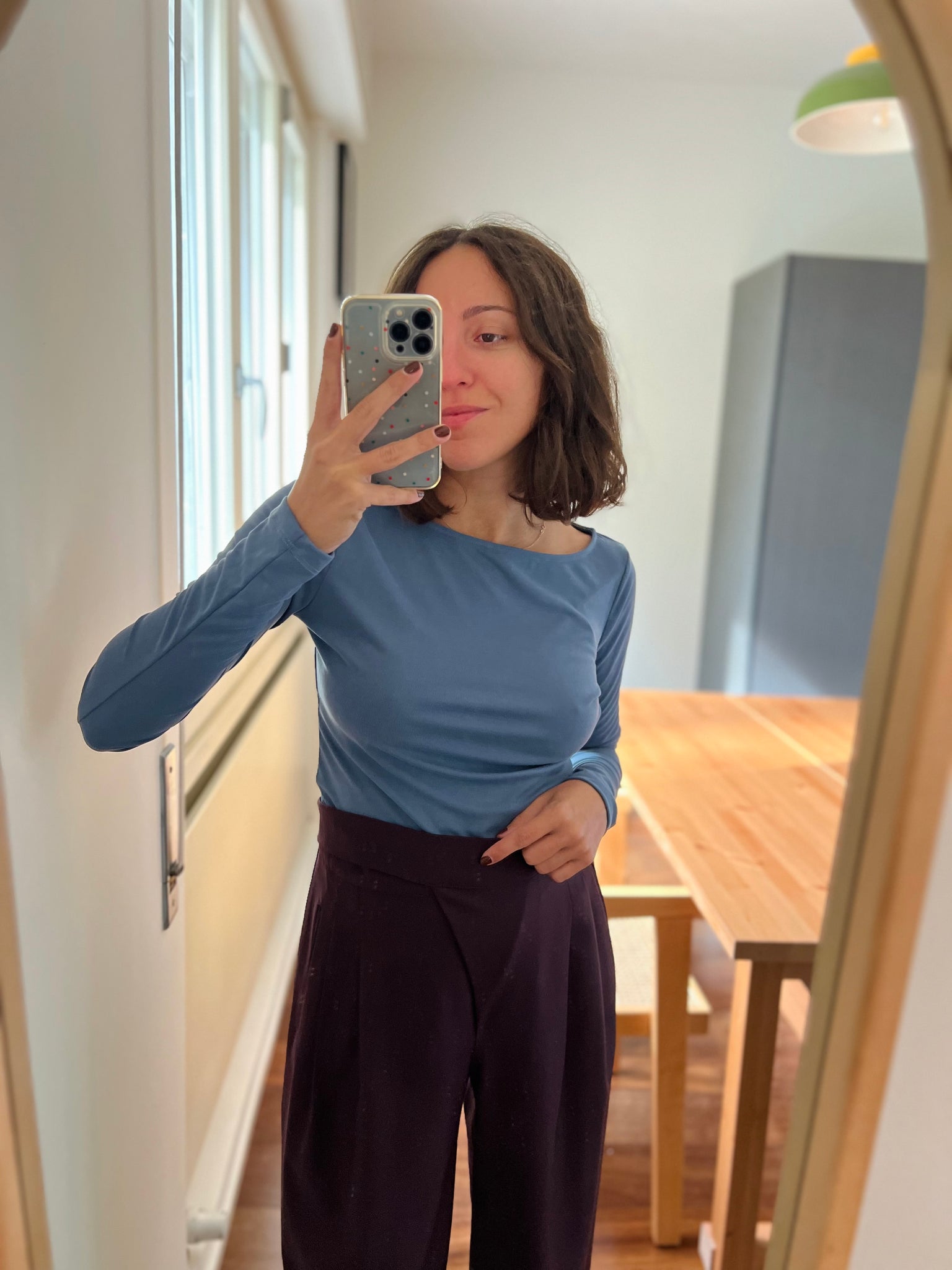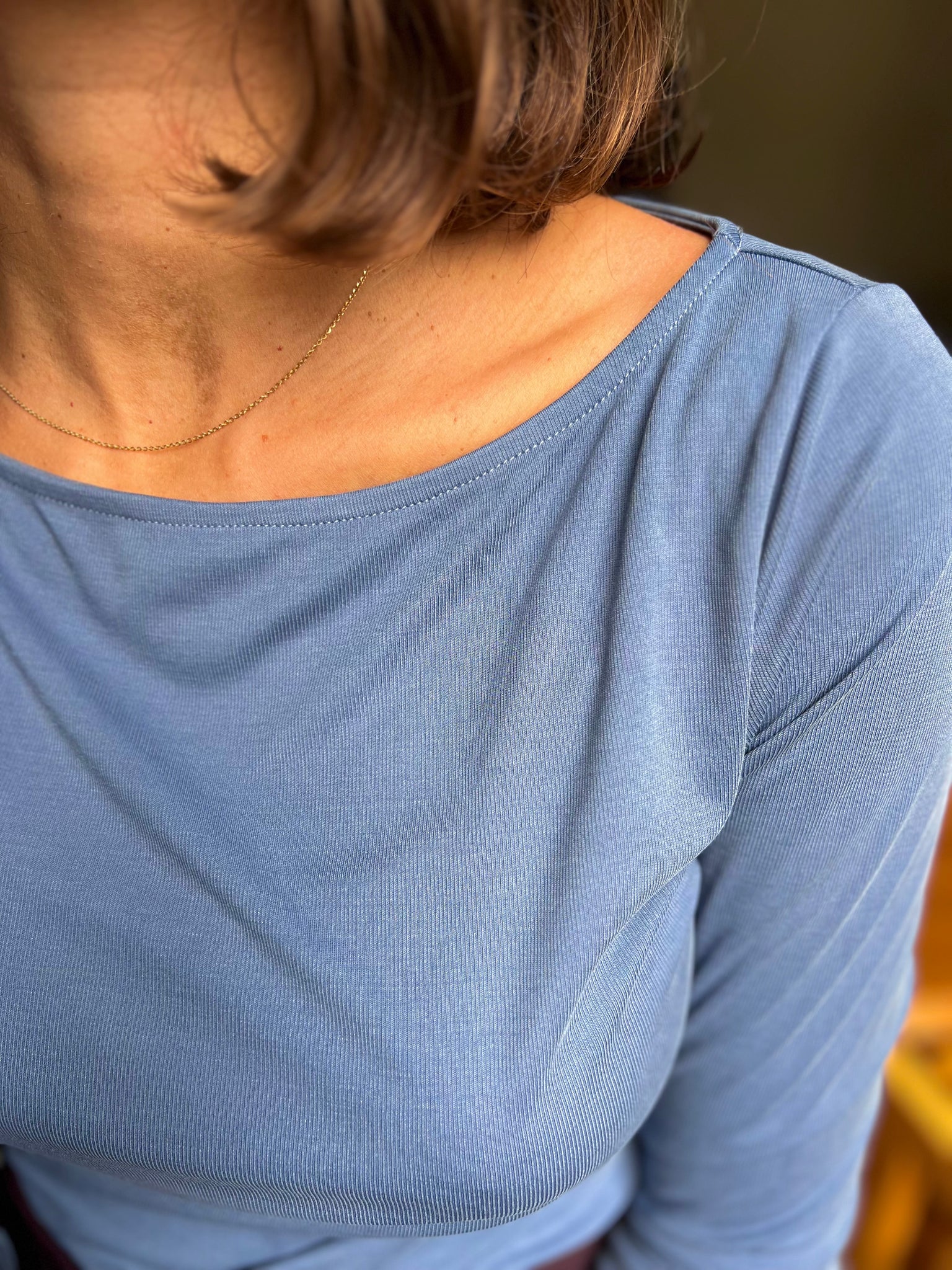 Maglietta sartoriale by Chiara Luppi, modello a manica lunga, in viscosa elasticizzata.