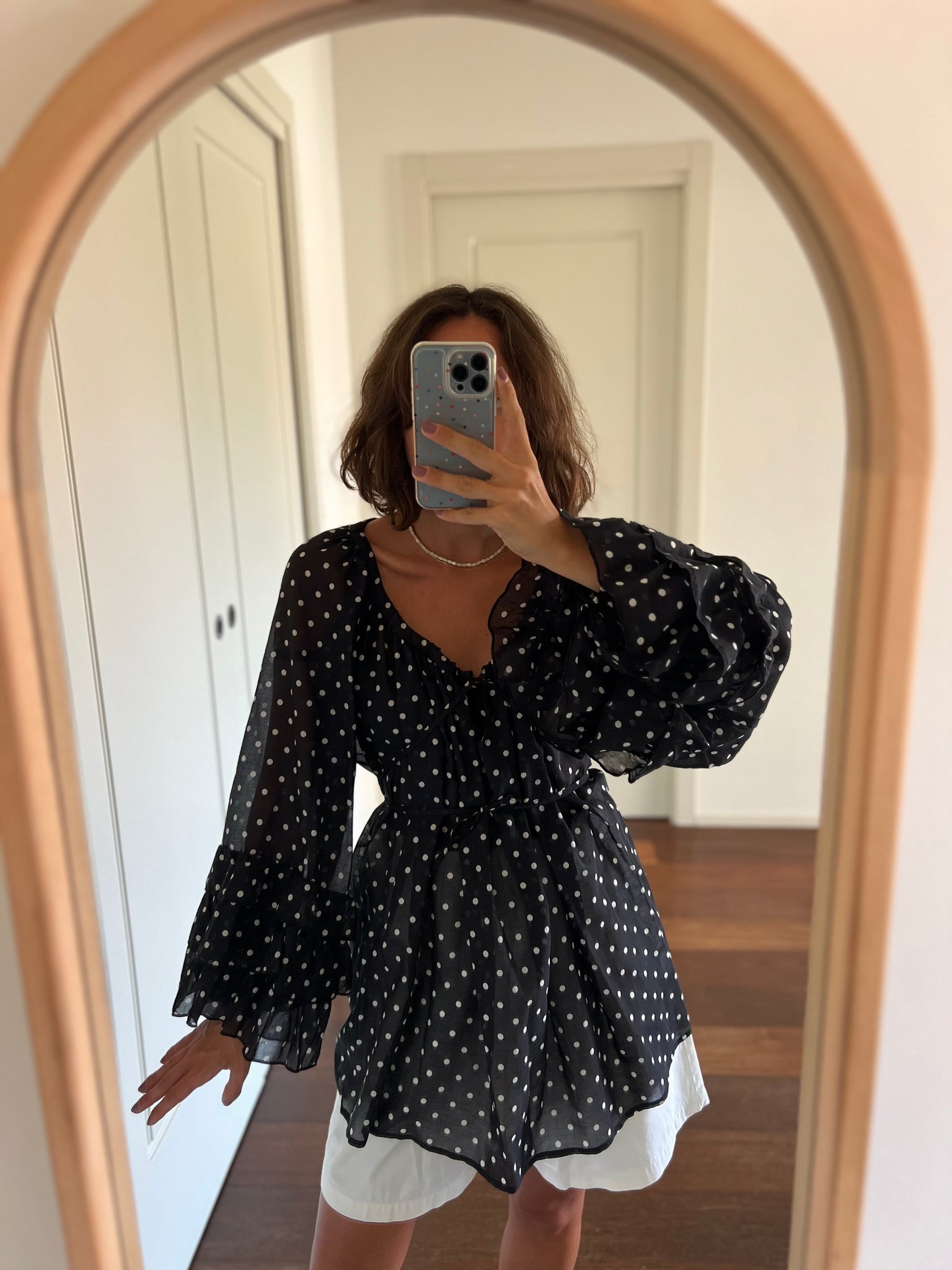 PRE ORDINE • Maxi camicia Formentera nera pois piccoli