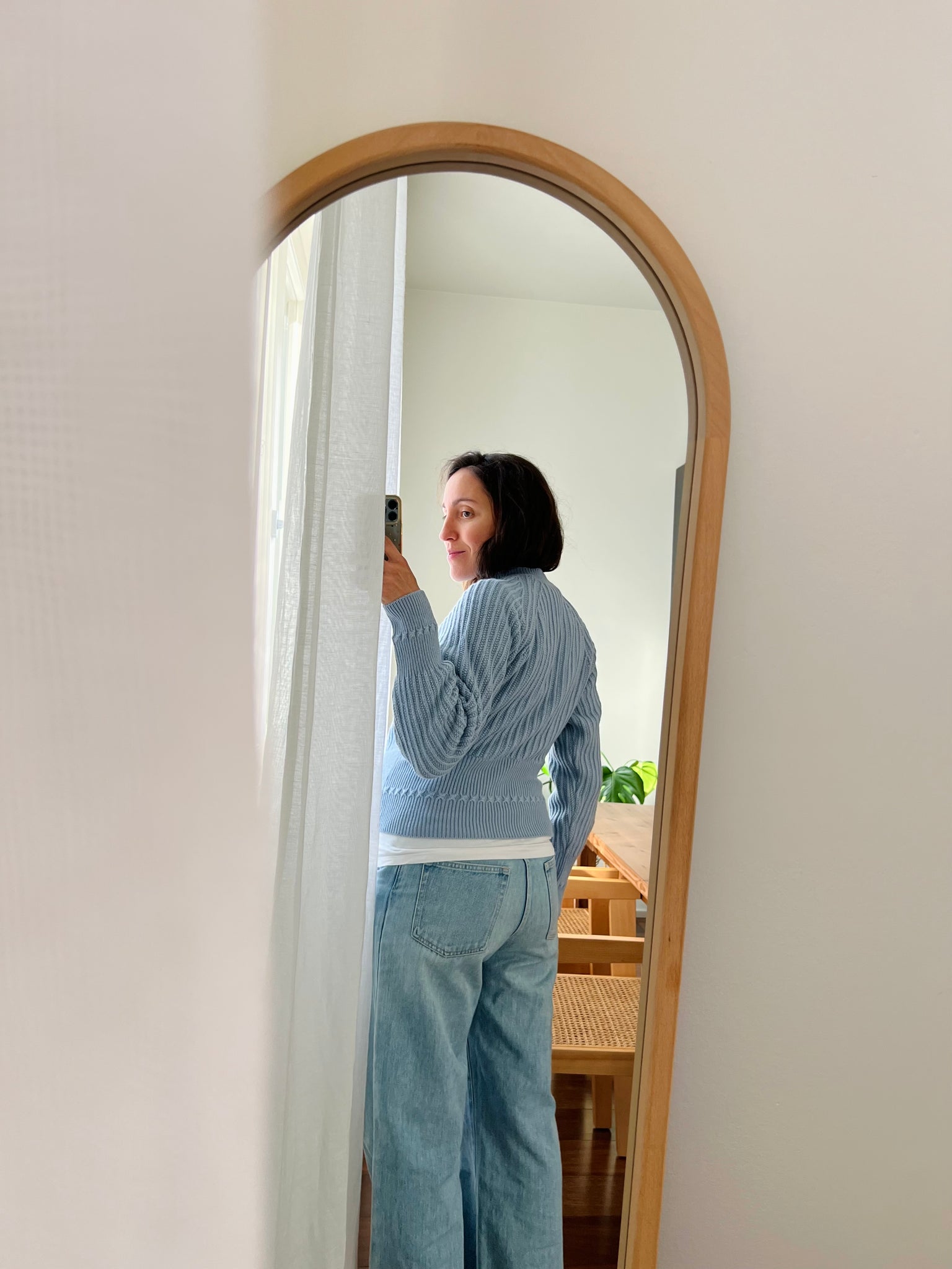 In foto vedete la S/M su una 40. Nelle ultime due vedete lo stesso modello in un altro colore, per capire come sta senza ingombro frontale.