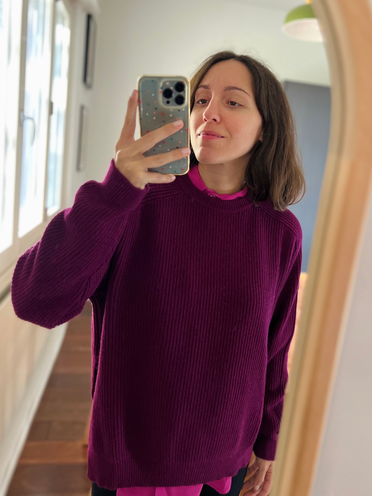 In foto vedete la S/M su una 40, in un’altra variante colore.