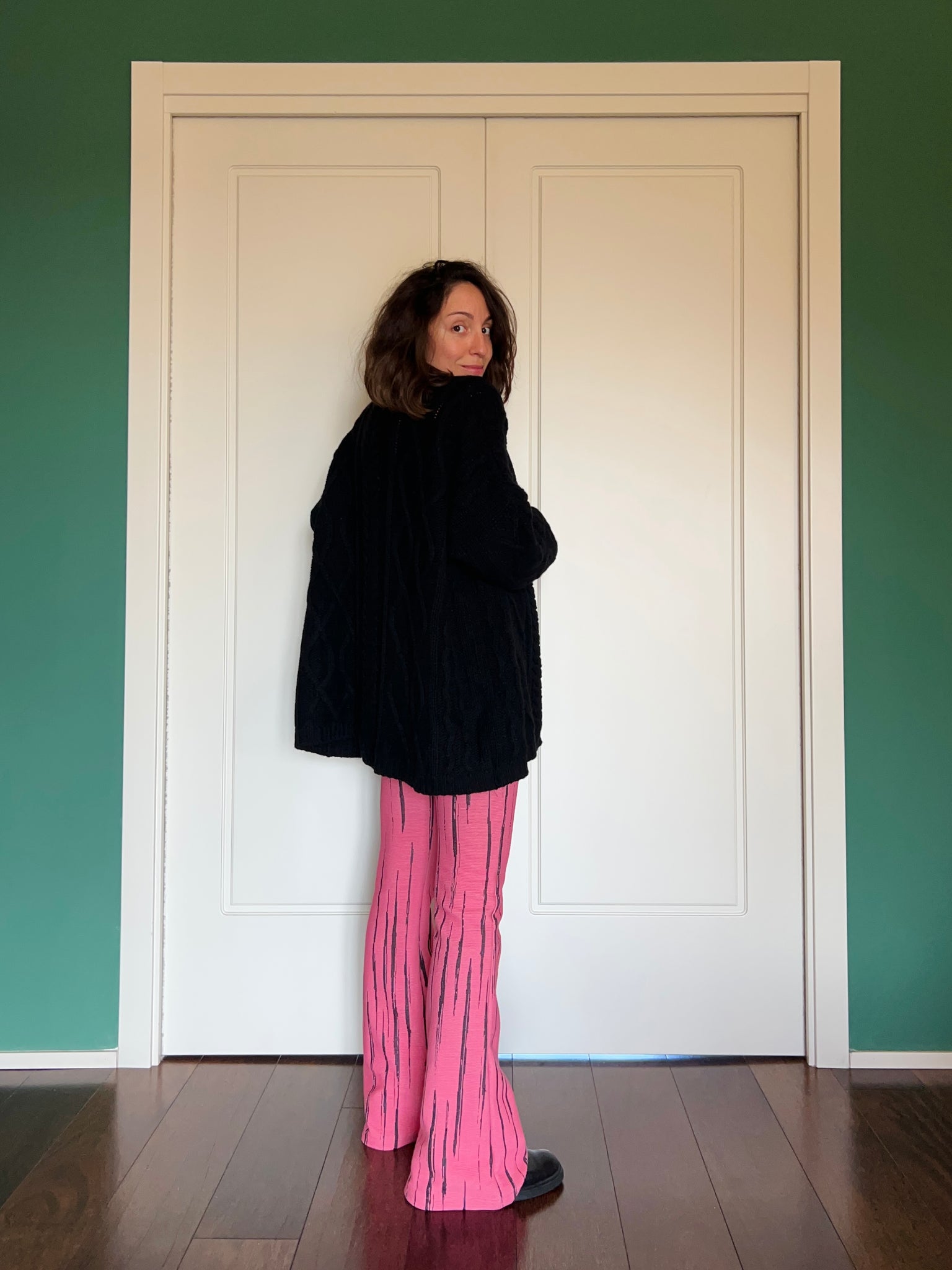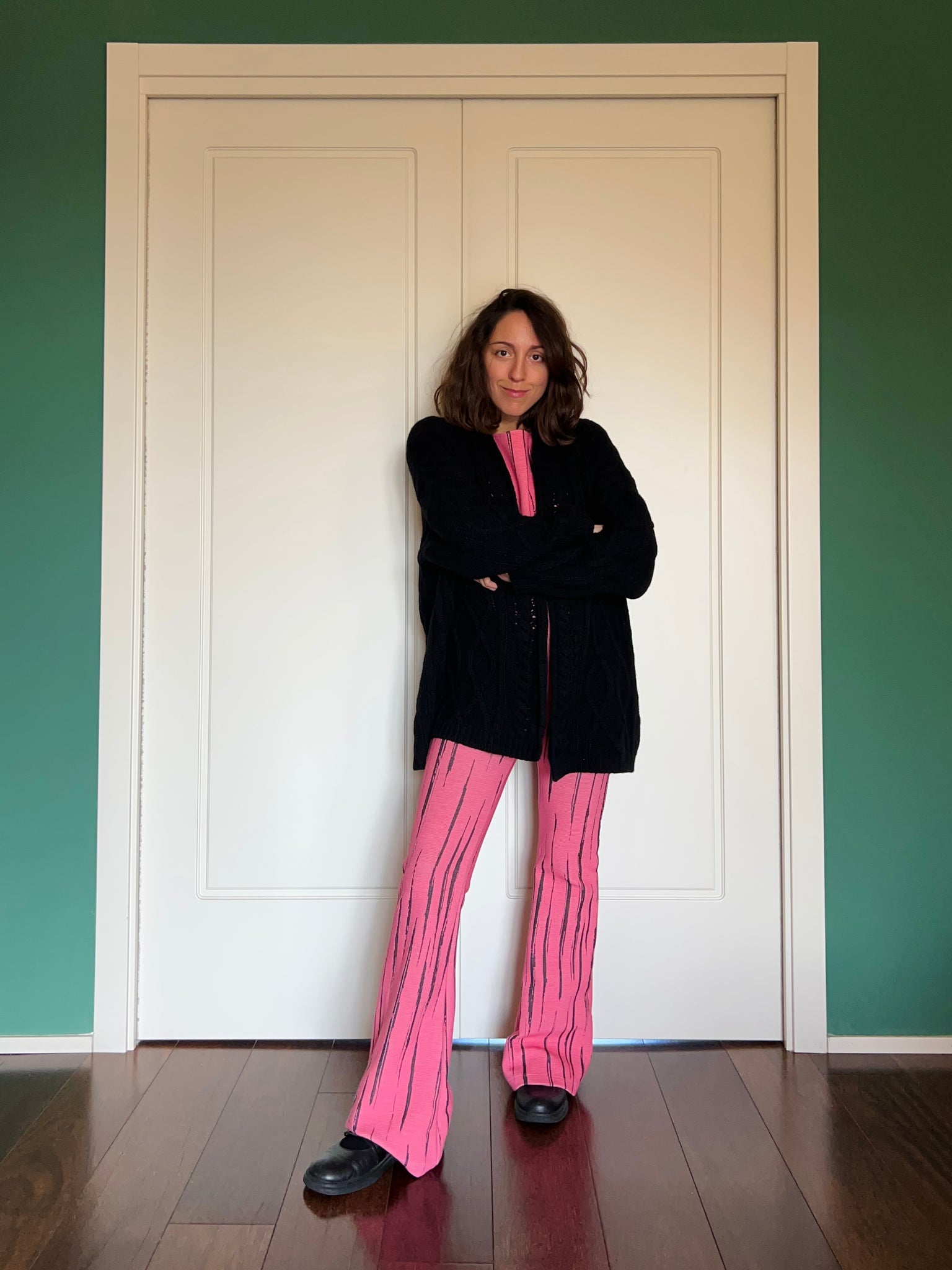 Pantalone sartoriale by Chiara Luppi, modello a zampa, a vita alta.