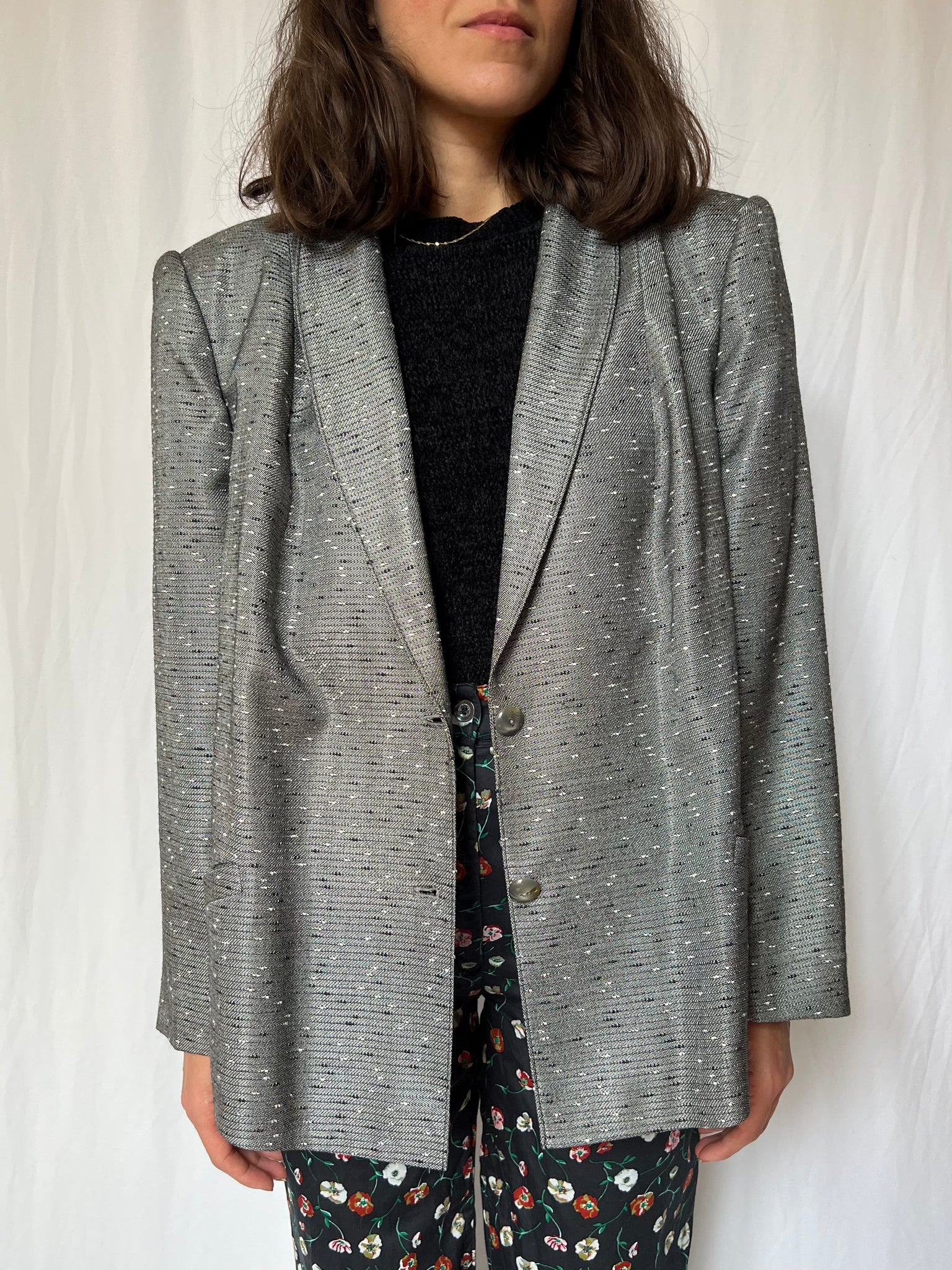 Blazer vintage in un tessuto lavorato, credo misto viscosa ma non ha etichette.