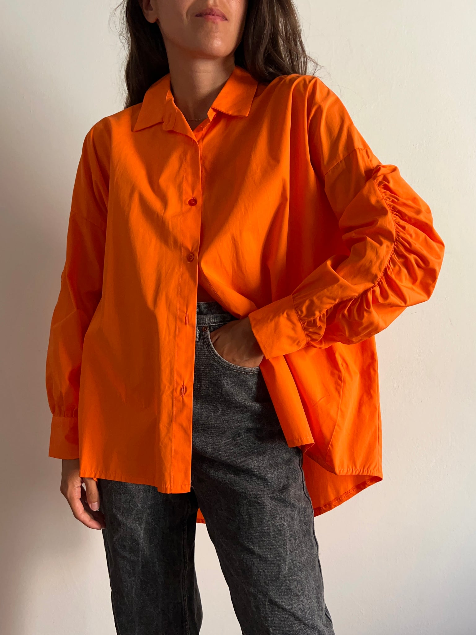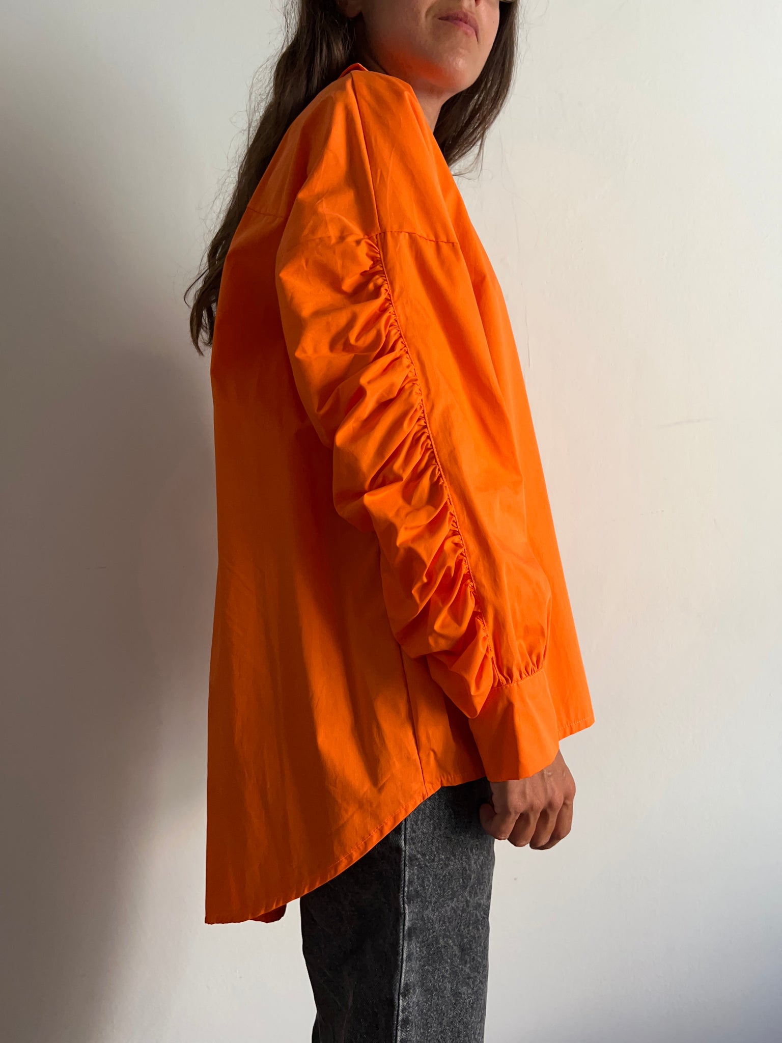PRE ORDINE • Camicia oversize con manica arricciata arancione