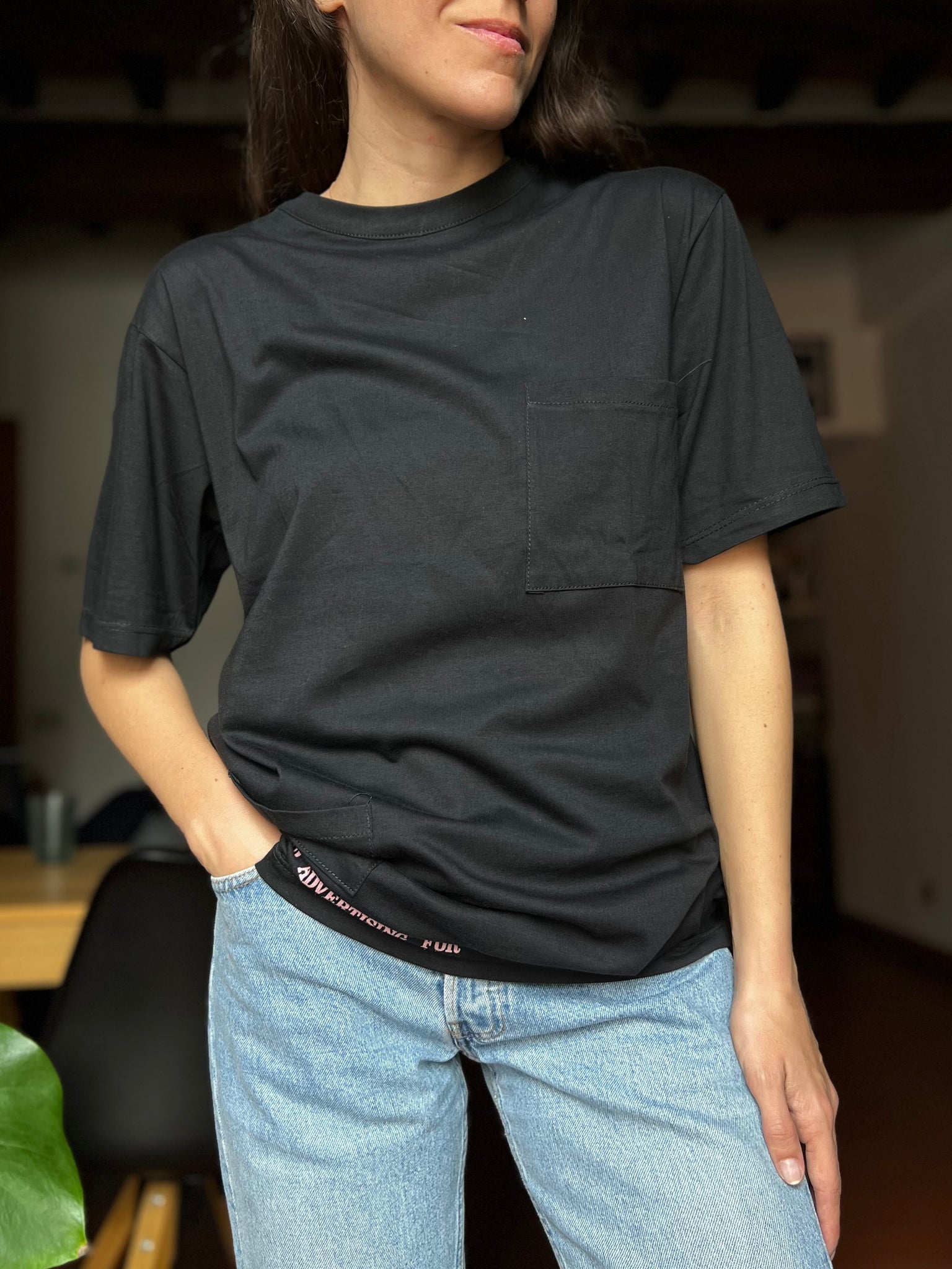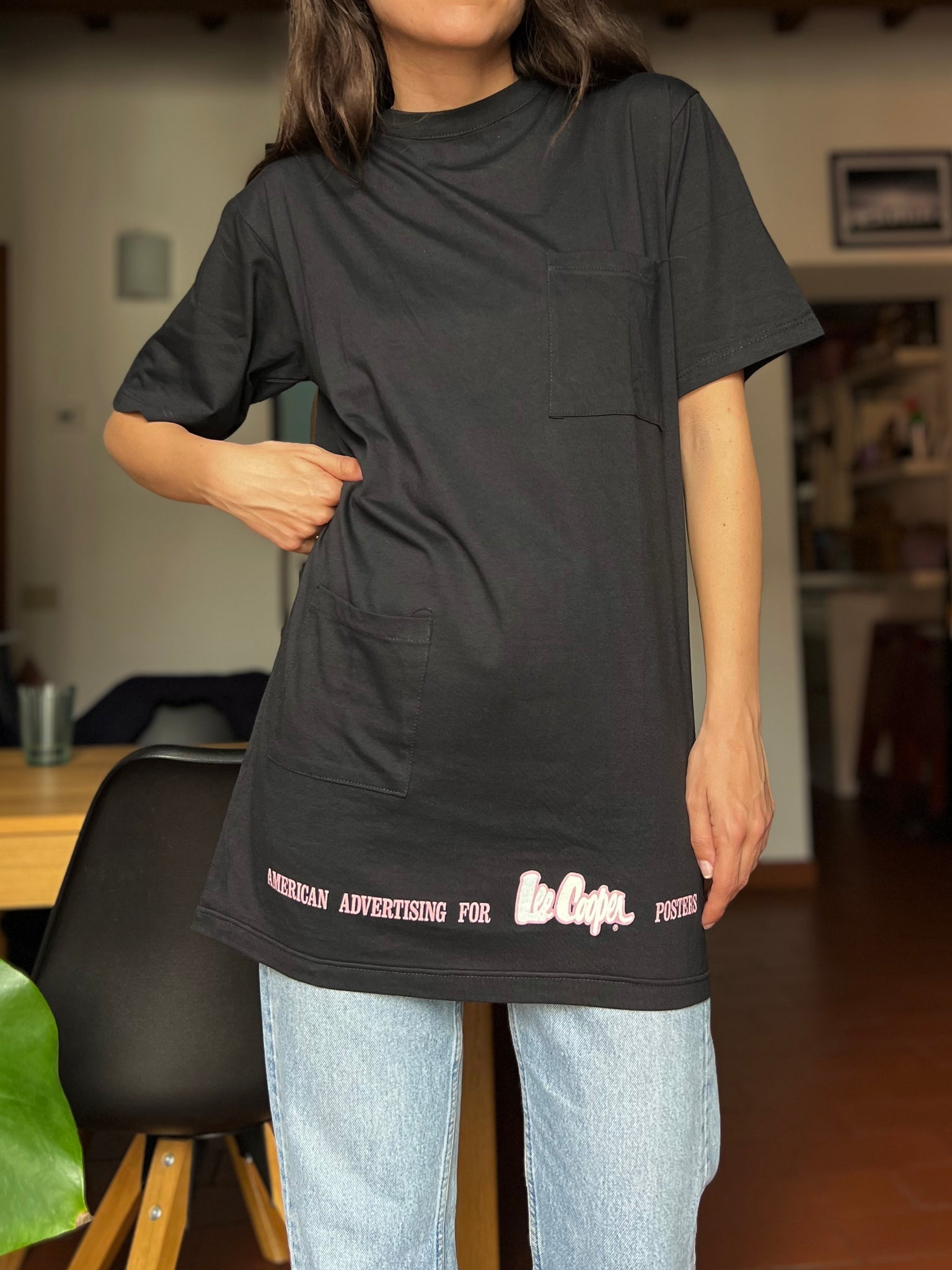 T-shirt lunga con stampa dietro nera