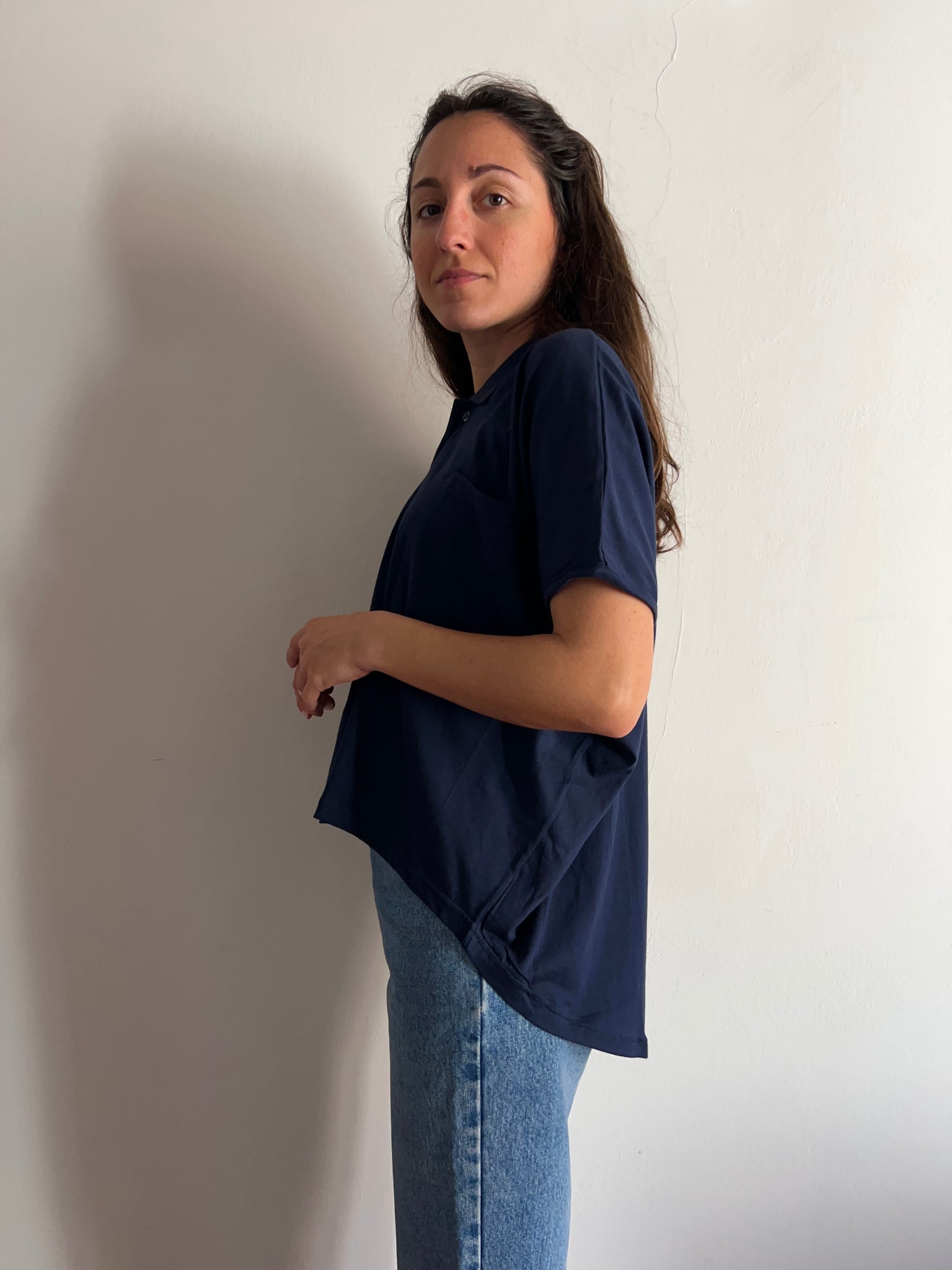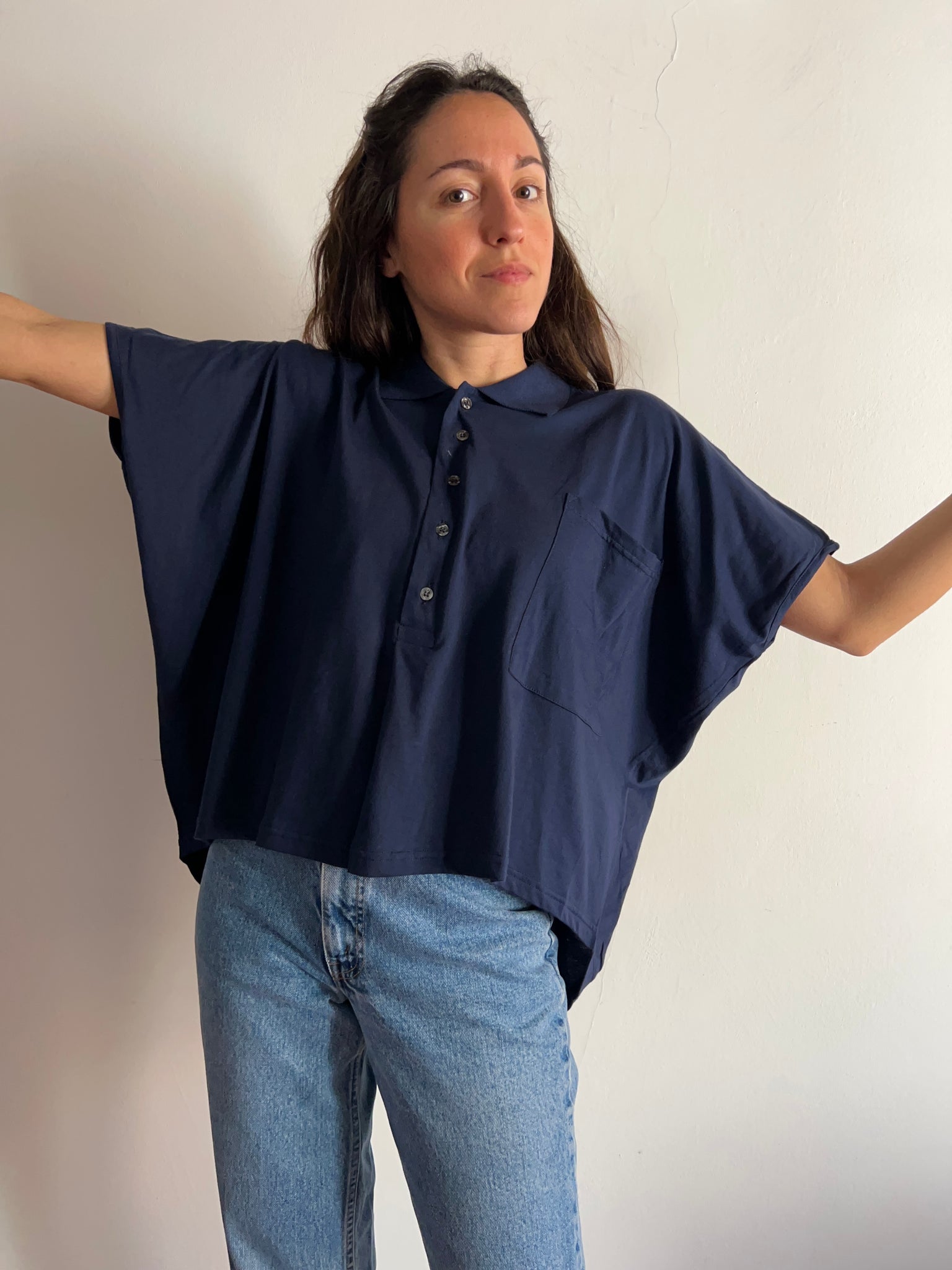 T-shirt vintage in 100% cotone elasticizzato, con colletto a polo.