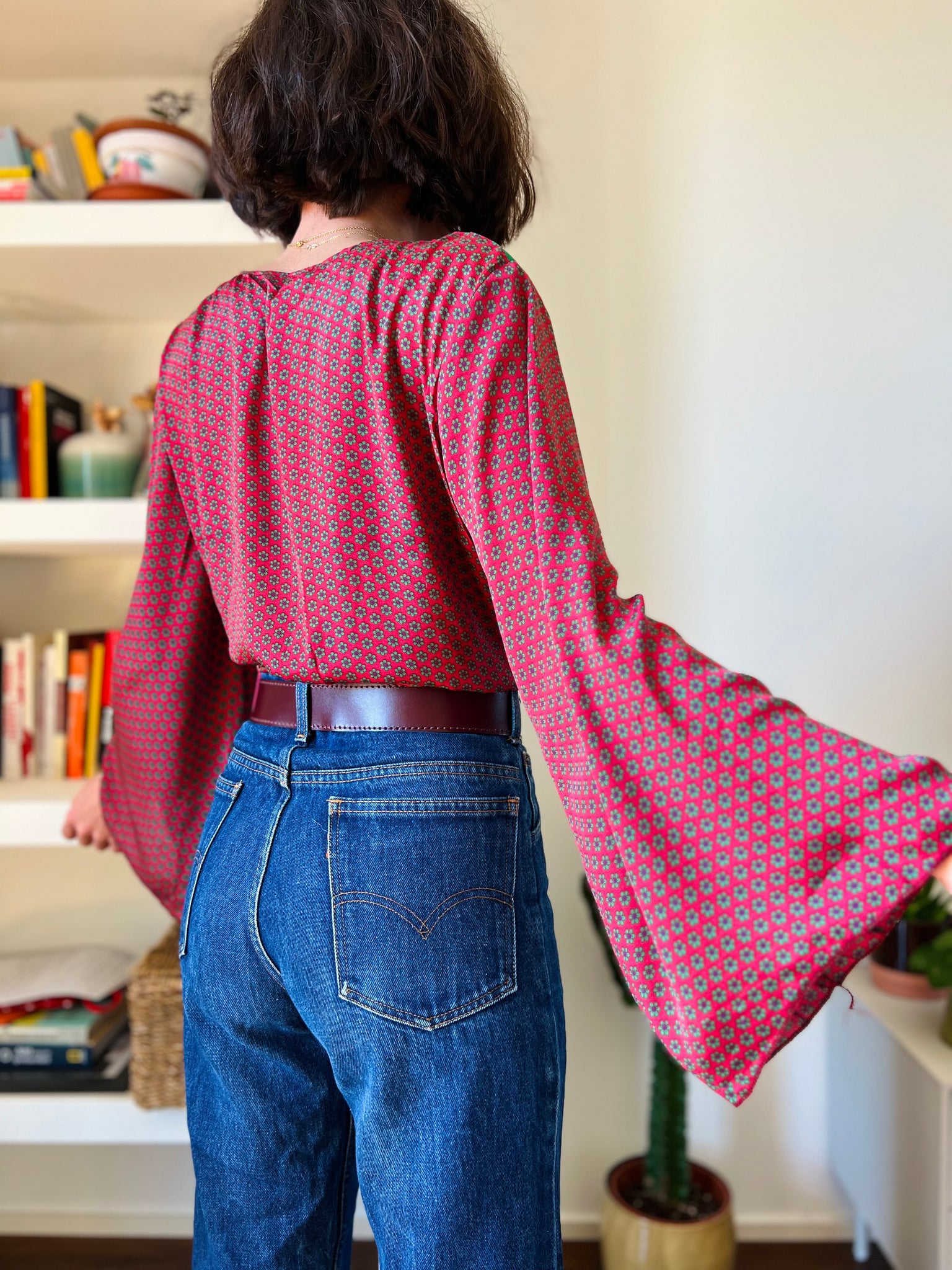 Camicia indiana incrociata bordeaux e verde