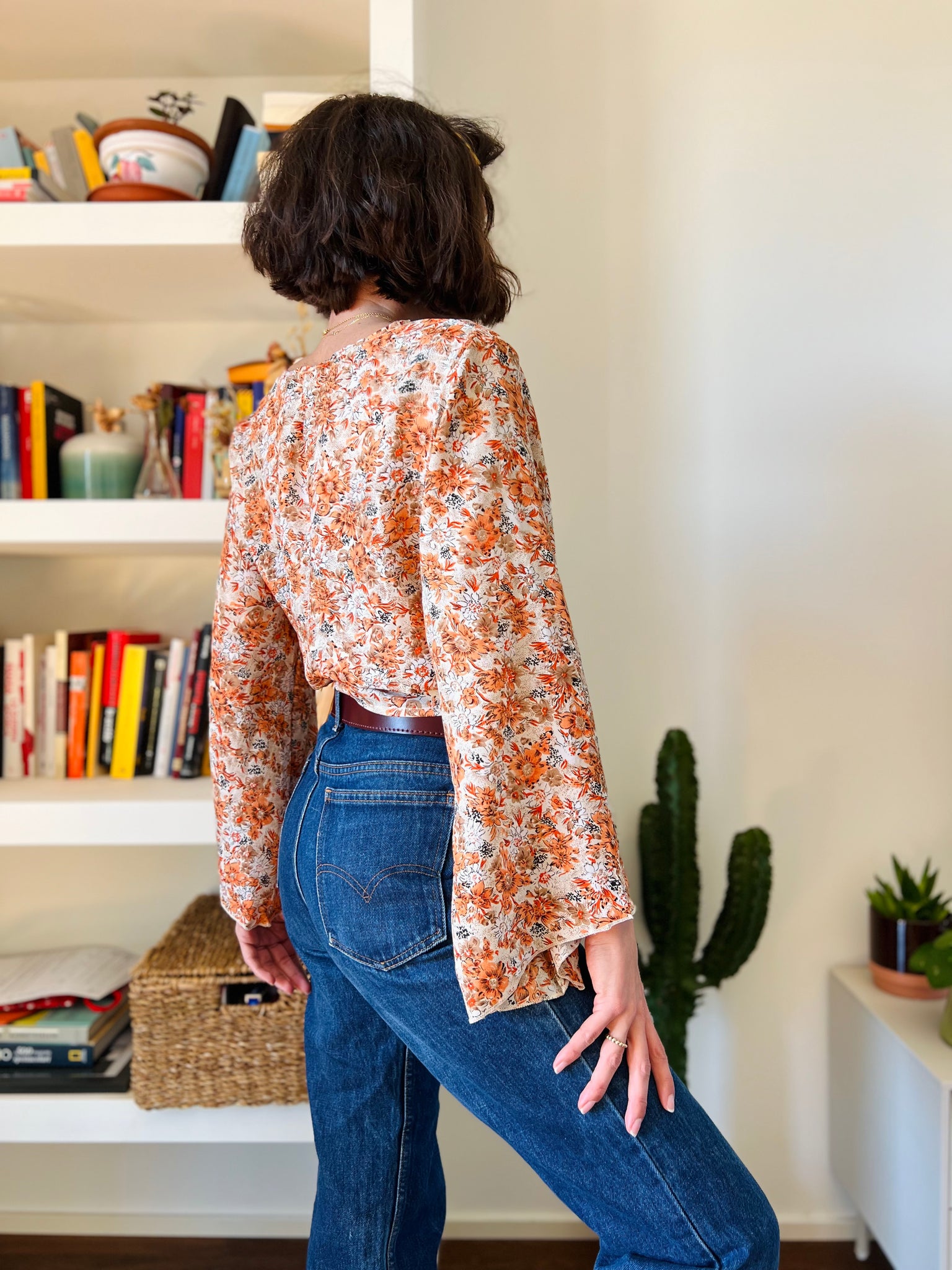 Camicia indiana incrociata fiori arancioni