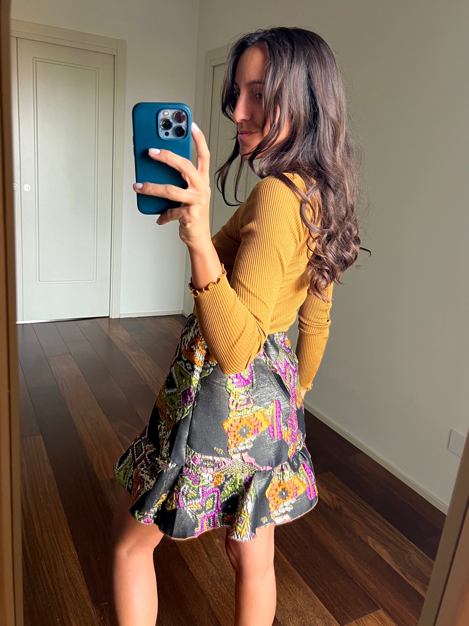 PRE ORDINE • Gonna corta tessuto jacquard colorato base nera