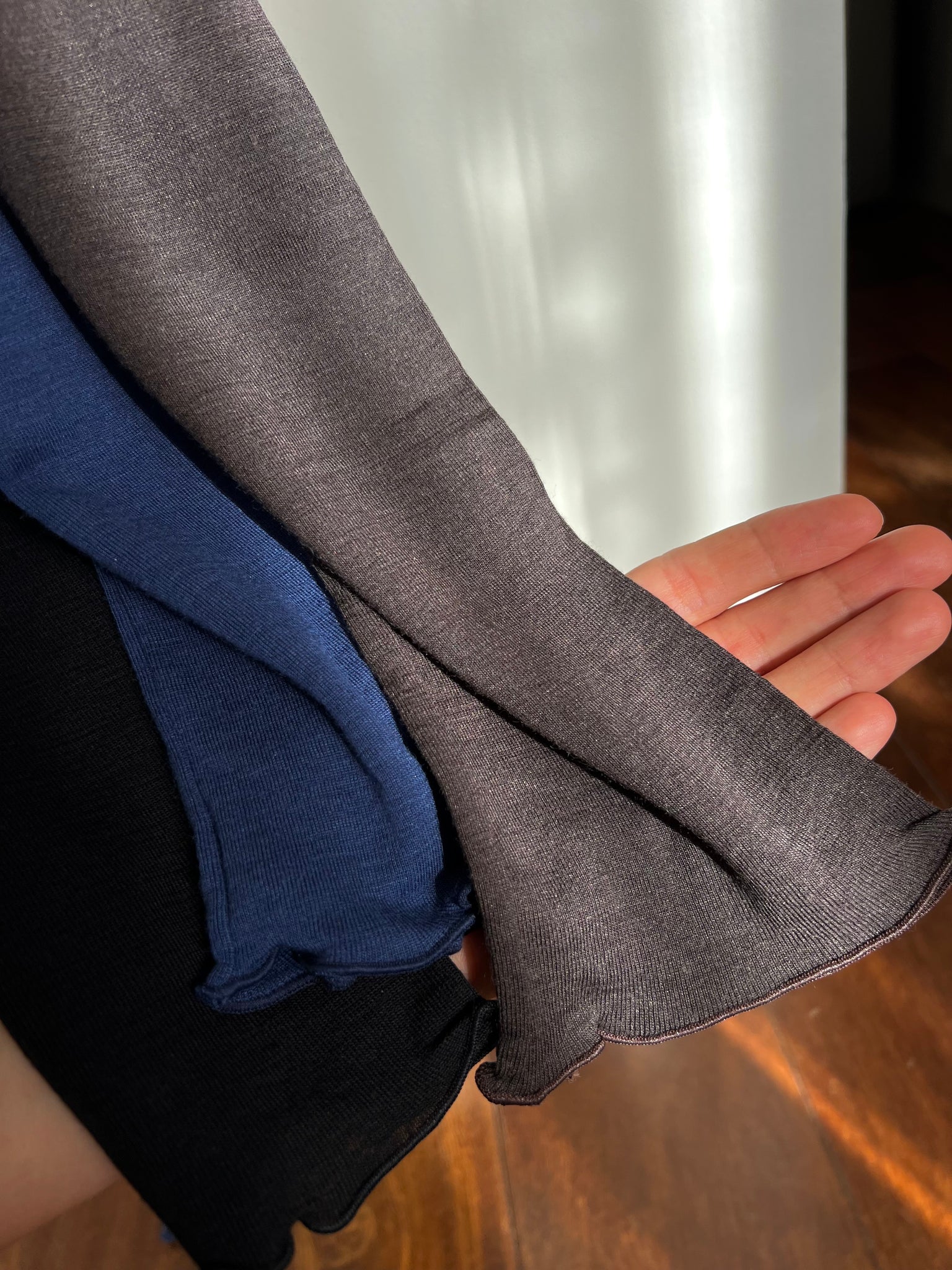 85% lana merino, 15% seta.