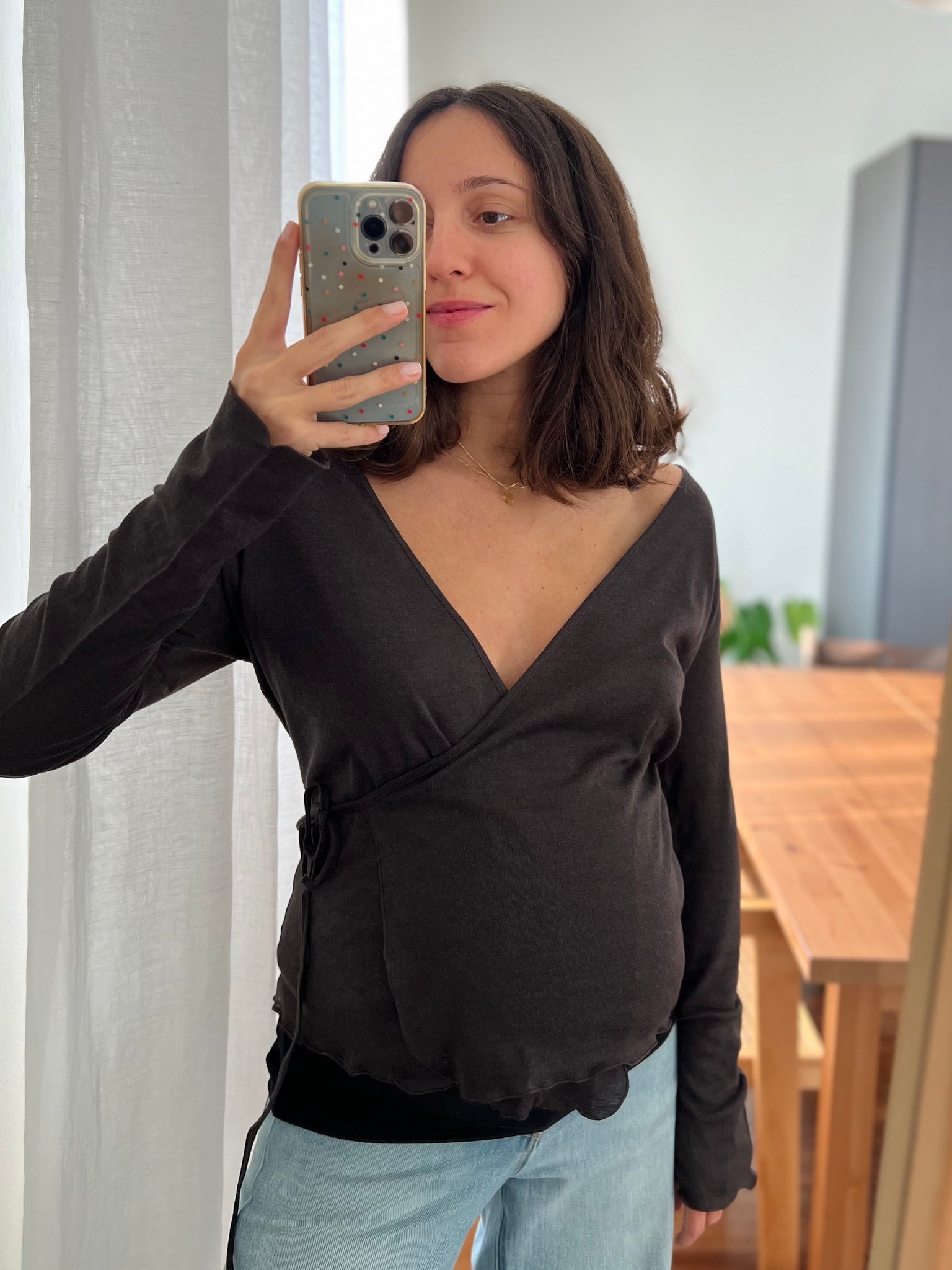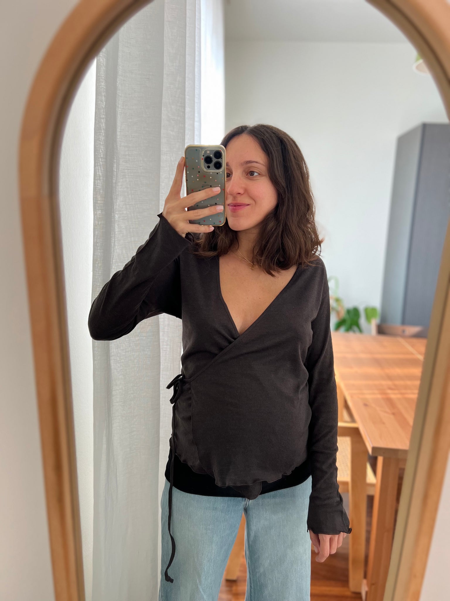 Maglia incrociata di lana • caffè