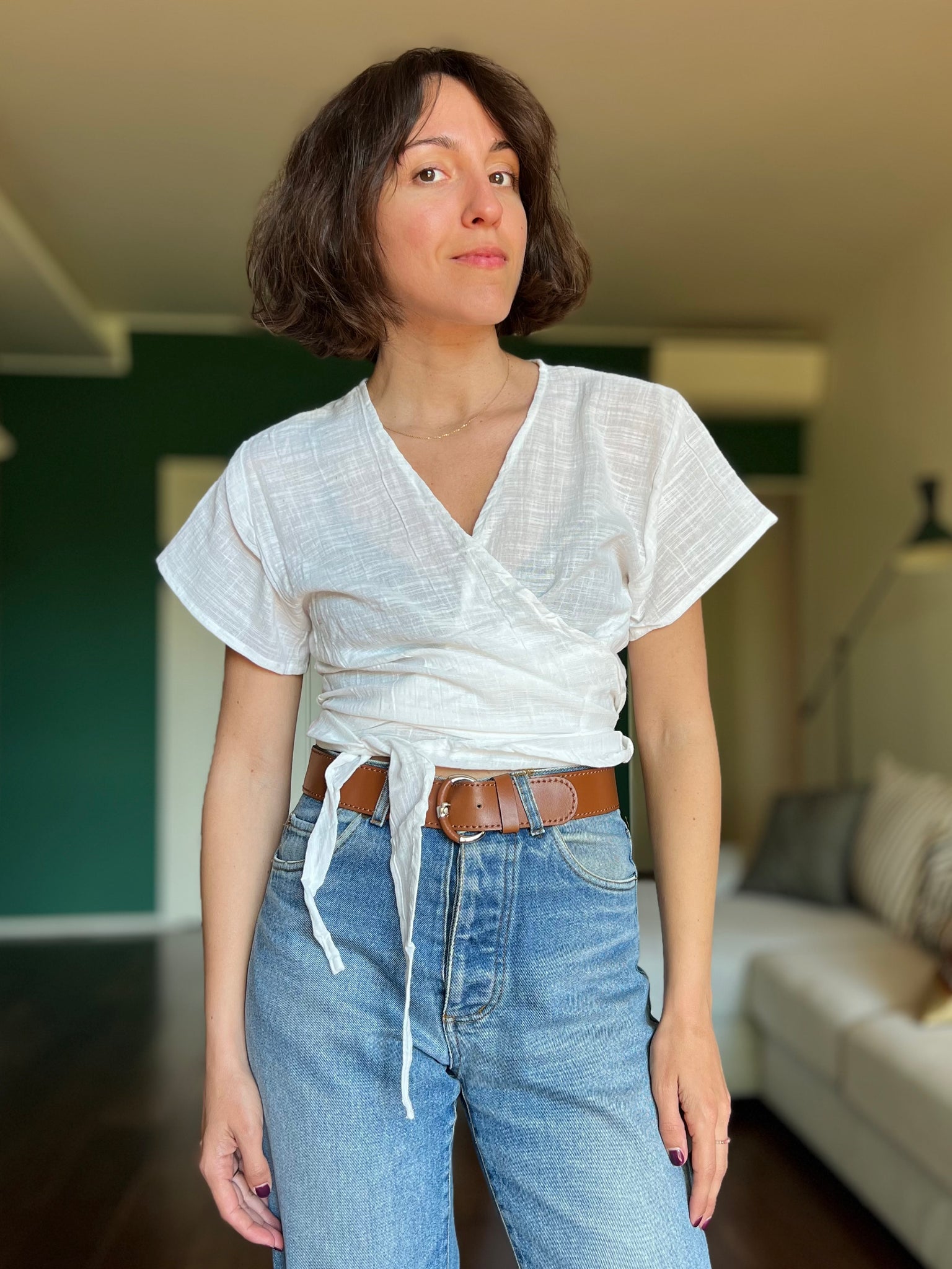Top incrociato a portafoglio, a manica corta.